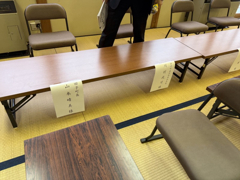 町長の隣の席は、田子町自治会連合会会長の私